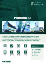 This exceptional cladding panel is designed with a unique profiled aluminium core and a durable coating, ensuring long-lasting performance. When tested to AS 1530.1 and AS 1530.3 in accordance with BCA/NCC requirements, PROCORE A1® proves its DtS non-combustible status.